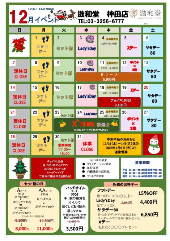 | 得々Cコース | 足つぼコース30分 |